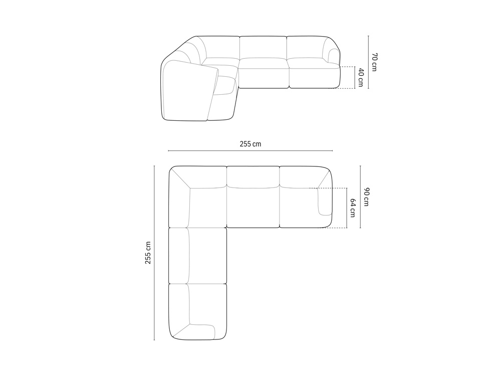 Canapé d'angle symétrique modulable, "Ignis", 6 Places, 255x255x70
